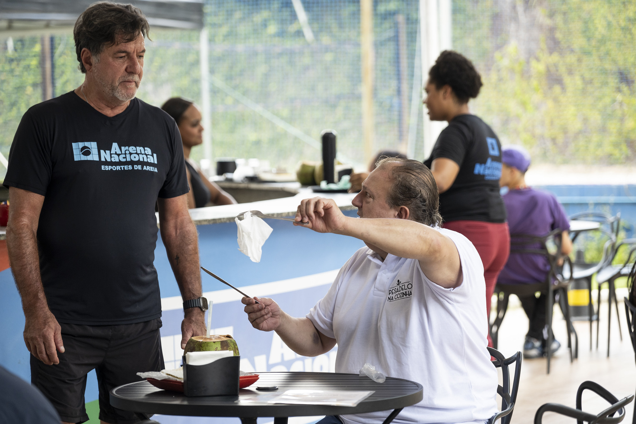 Jorge Bavab administra a quadra de beach tennis e inaugurou o espaço gastronômico há seis anos com o intuito de atrair os frequentadores, porém não tem obtido êxito. Além da desorganização, o fato de a cozinha ser longe do salão faz com que a comida chegue fria aos clientes.