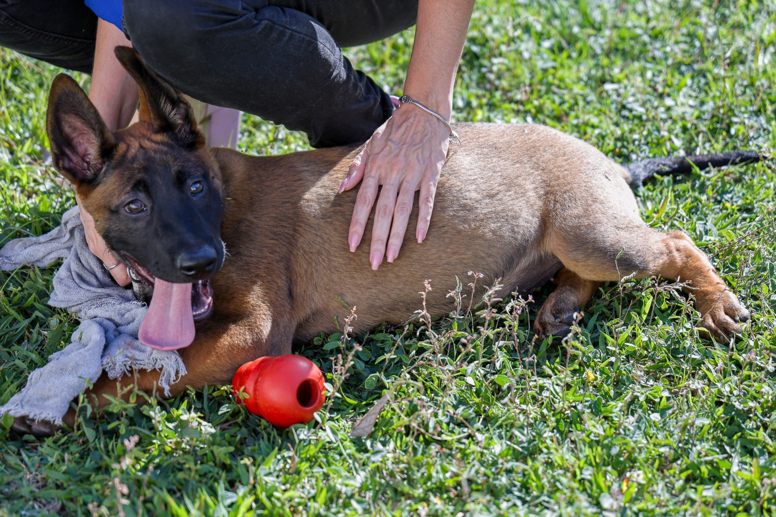 Filhotes de três meses, os dois estão em fase de socialização e início de testes de adaptação do serviço. Passadas essas etapas, iniciam o treinamento efetivo de faro, patrulhamento e proteção para, definitivamente, compor a equipe do Canil.