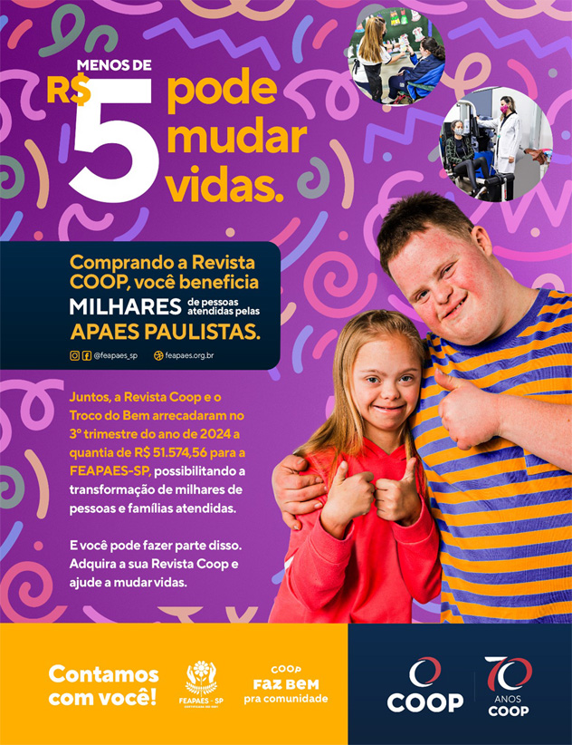 A outra parte de R$ 25.420,00 foi arrecadada por meio da Revista Coop, publicação mensal da rede de varejo que pode ser adquirida em qualquer unidade de negócio por R$ 4,90 e que destina R$ 1,00 de cada exemplar para a Feapaes.