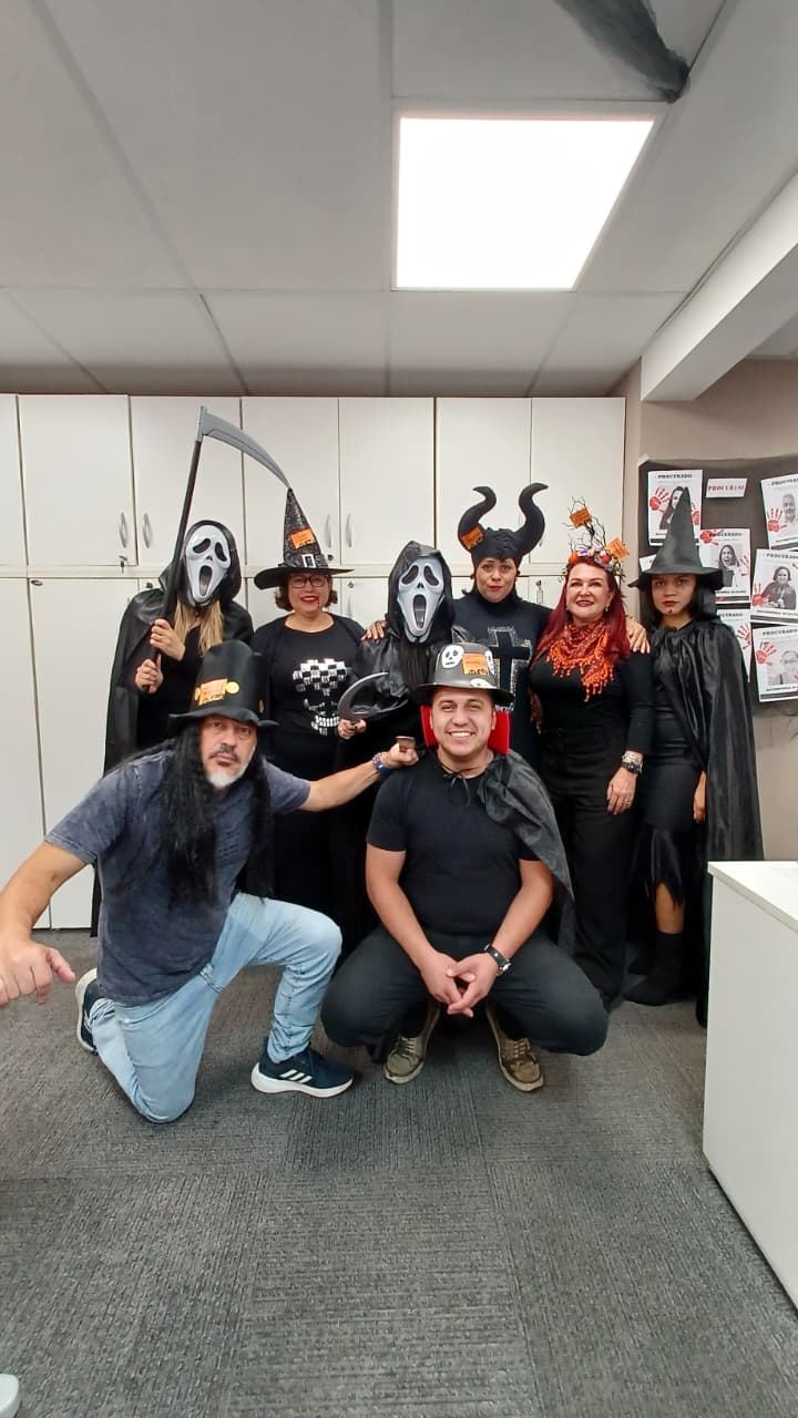 Quem pensa que a diversão de Halloween é coisa de criança está enganado. Os adultos também adoram entrar no clima de doces ou travessuras. Hoje, 31 de outubro,  os colaboradores da construtora MBigucci entraram no espírito da festa, com fantasias, doces, brincadeiras e muita criatividade.