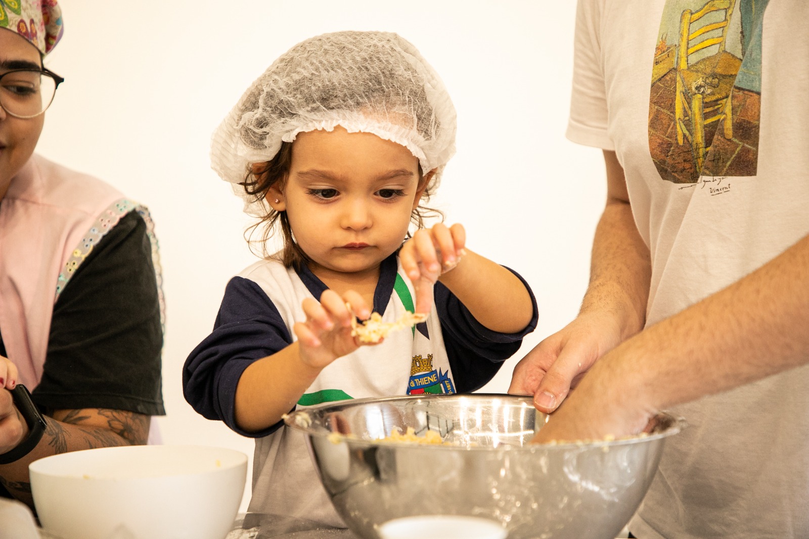 Alunos da EMEI (Escola Municipal de Educação Infantil) Rosana Aparecida Munhos, em São Caetano, participaram do projeto Cozinha Experimental, na tarde desta quarta-feira, 10 de maio. Ao todo, 25 alunos de 2 anos participaram do projeto e aprenderam sobre a culinária dos povos originários, por meio da produção de pão de mandioca, feito por eles mesmos e supervisionados pela coordenadora pedagógica, Priscila Bombassei, da diretora, Juliana de Carvalho Yamane Contar, e do API (auxiliar de primeira infância) Rodrigo Barbosa.