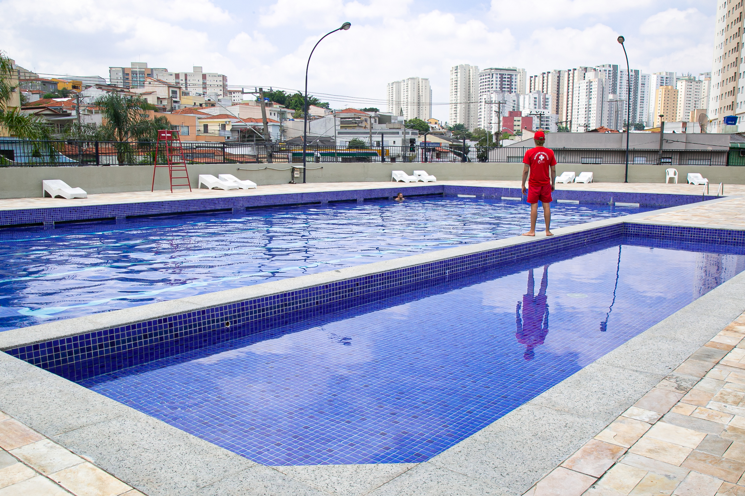 Todas as piscinas contam com um monitor aquático (salva-vidas), como é o caso do Bruno Alencar de Souza, 23 anos, do CER Victório Dal’Mas (Santa Maria). “É um trabalho tranquilo, principalmente por se tratar de um clube muito frequentado por famílias e como temos aqui no clube uma piscina infantil, nosso trabalho requer atenção redobrada. Mas nunca tivemos problemas de acidentes”, resume Bruno.