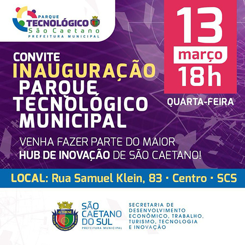 A inauguração do Parque Tecnológico São Caetano contará com as presenças do prefeito José Auricchio Júnior, do secretário Municipal de Desenvolvimento Econômico, Tecnologia, Inovação, Turismo e Trabalho, Daniel Córdoba, e Alan de Camargo, Executivo de Governo Digital e Inovação na Prefeitura de São Caetano, responsáveis pela implantação do projeto, além de autoridades, representantes do Sebrae e das Universidades e CEOs das empresas parceiras.