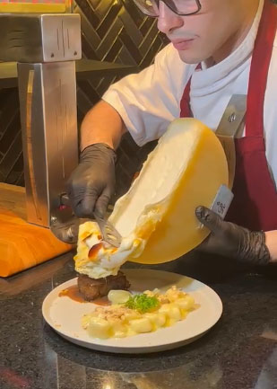 Inspirado na gastronomia italiana, o nome Ticino é foi tirado deuma cidade da Suiça, mas que tem as características do famoso país das massas e é a produtora do queijo carro chefe do local. Com pratos ítalo-suíços, o queijo Radete é uma dos destaques do cardápio, ou melhor, e uma atração à parte, já que o cliente pode optar por acrescentar a raclete no prato, isto é, deixar o que já é bom ainda mais delicioso com uma porção caprichada do queijo derretido na hora. E toda a ação pode ser acompanhada e filmada de pertinho por quem vai degustar.