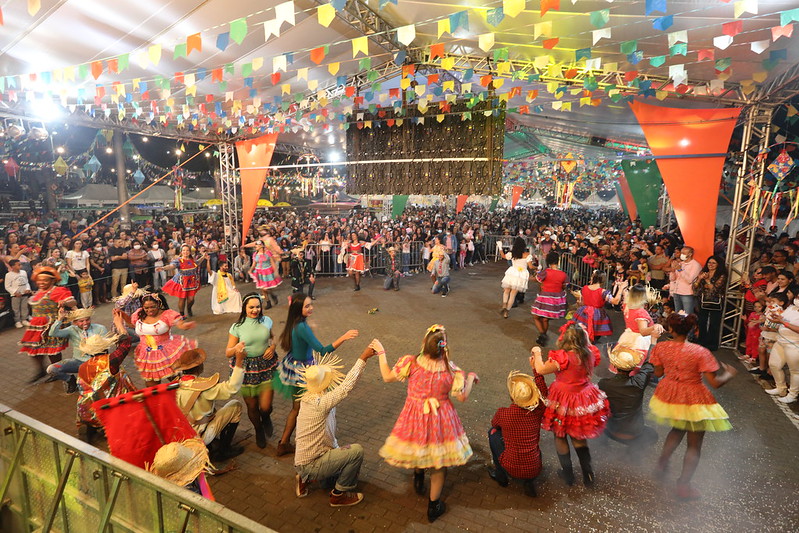 Barracas de comidas e bebidas típicas, brincadeiras e música com DJ Renato, Nego do Acordeon e Gaviões do Nordeste.