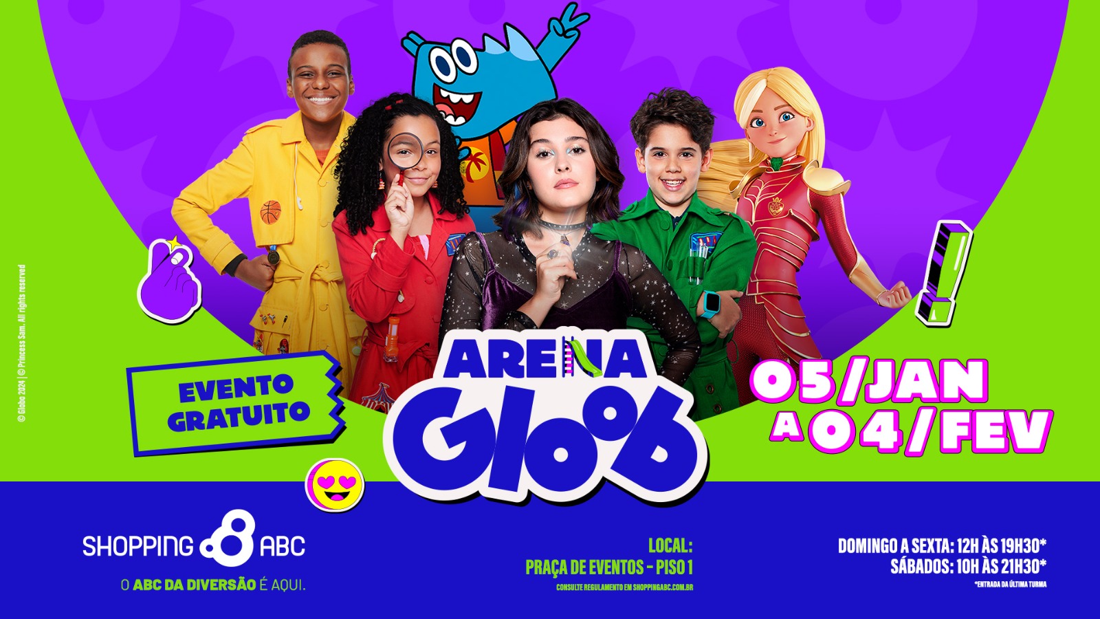 Uma nova atração promete fazer a alegria das crianças no Shopping ABC, em Santo André. Até 04 de fevereiro, o empreendimento recebe a “Arena Gloob”, um circuito de atividades inspiradas em programas do canal infantil da Globo, como “D.P.A. – Detetives do Prédio Azul”, “Tara Duncan”, “Acampamento de Magia”, “Fuja se for Capaz” e “Giga Blaster”. O evento, de 122 metros quadrados, é voltado para pequenos de 4 a 12 anos e tem entrada gratuita.