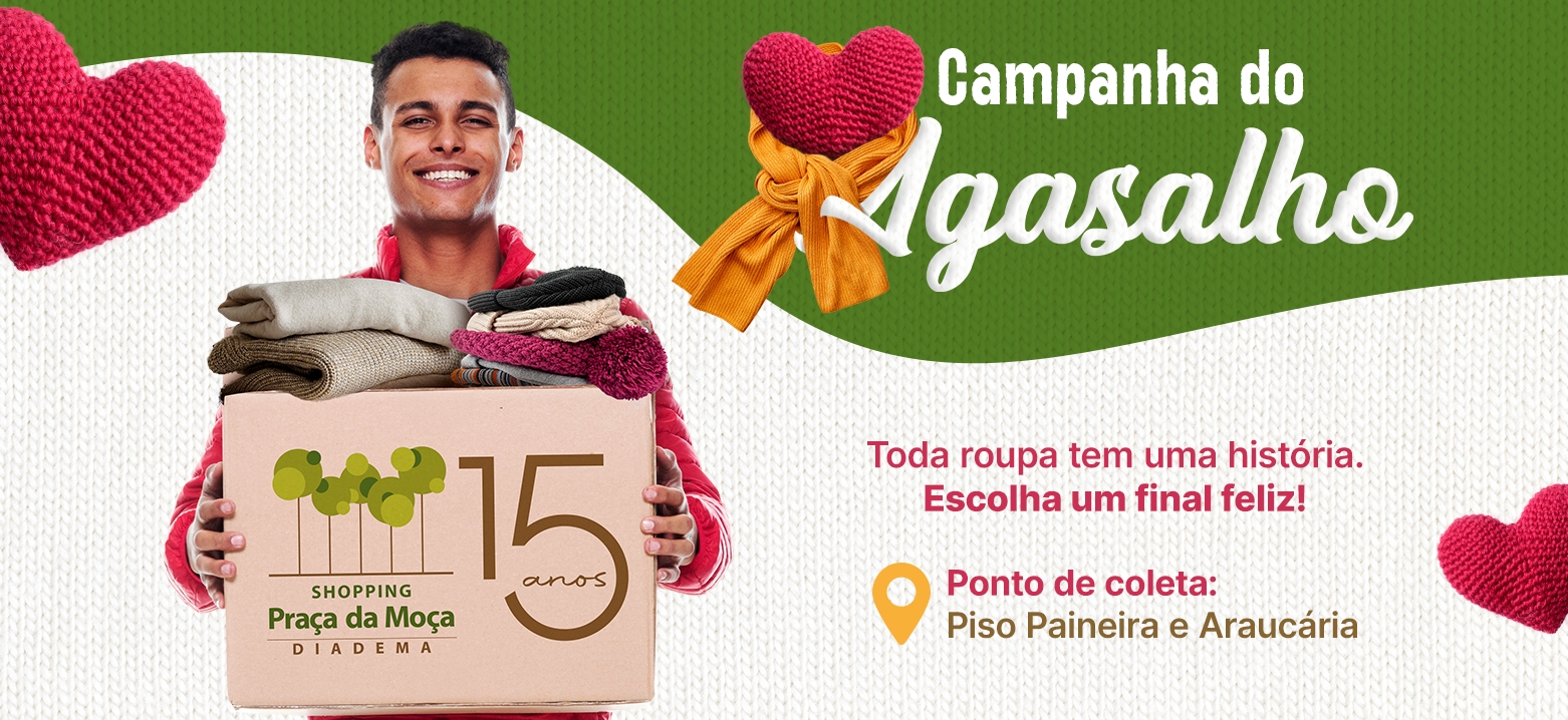Com o slogan “Toda roupa tem uma história. Escolha um final feliz” o Shopping Praça da Moça, localizado em Diadema, inicia a campanha do agasalho de 2024 recebendo, a partir do dia 20 de abril, roupas e artigos para o inverno.